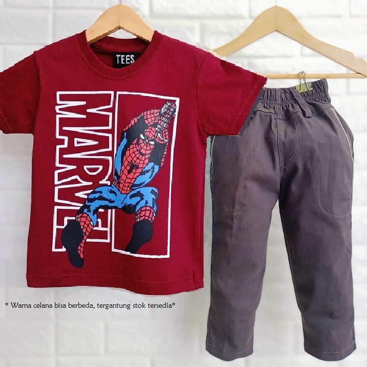 BAJU ANAK LAKI SETELAN SUPERHERO CELANA PANJANG KATUN CAPT AMERICA THOR AVENGER SPIDERMAN 1-9 TAHUN