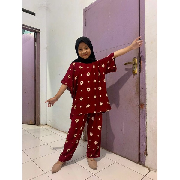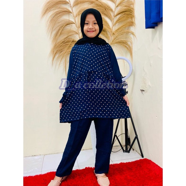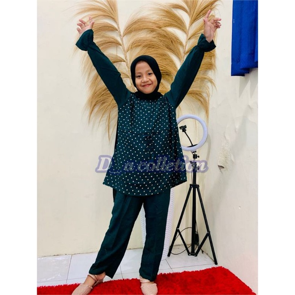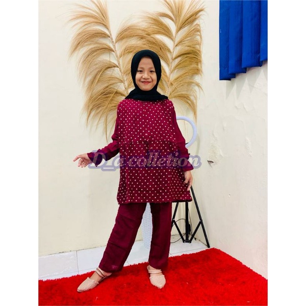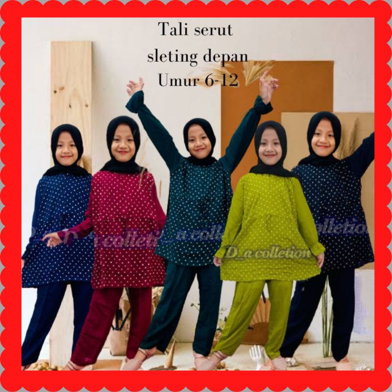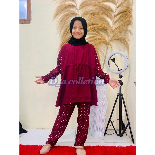 Baju Anak Prempuan Rayon Tiydi Motif Polka Setelan Anak Usia 4 sampe 12TH Setelan Anak Prempuan