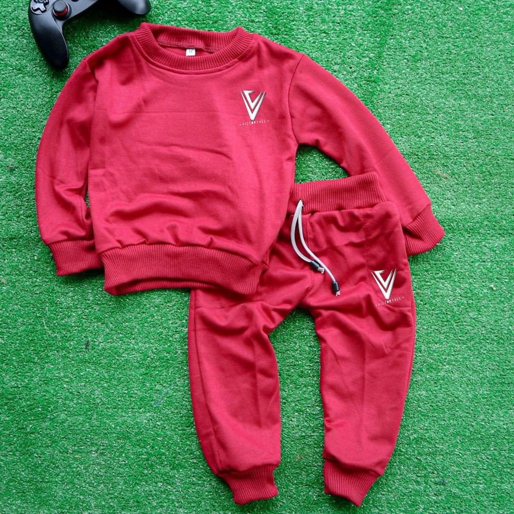 BAJU ANAK SETELAN SWEATER LOGO VCRL TRENING JOGGER OLAHRAGA BAHAN LEMBUT LAKILAKI/PEREMPUAN 0-7thn MERAH
