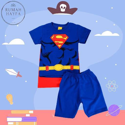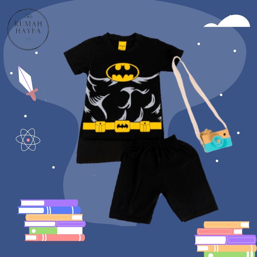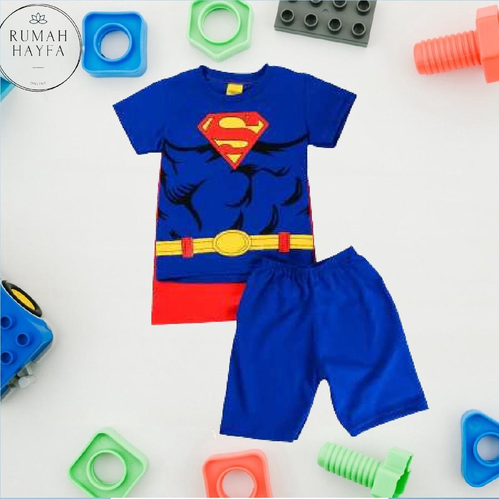 HAYFA - setelan anak laki-laki balita superhero BATMAN SUPERMAN ada SAYAP belakang baju/ stelan bayi motif SUPERMAN BATHMAN / Baju anak tanah abang kualitas premium / Kwalitas import usia 1-3 tahun Baju Grosir Anak Kartun Animasi Animal Doraemon