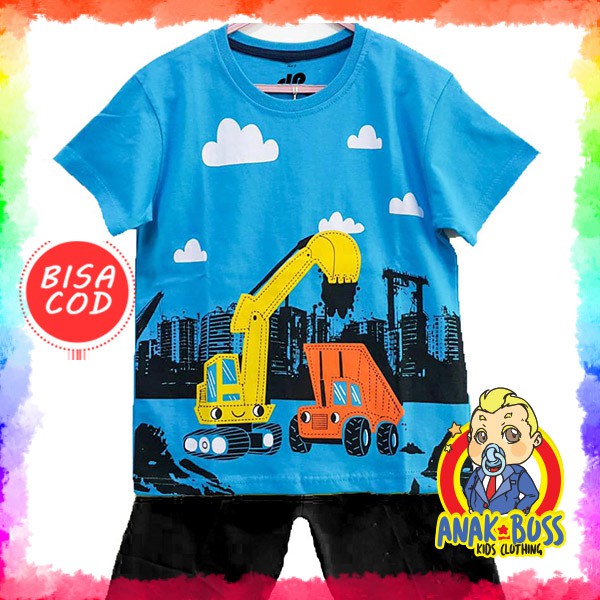 Setelan Kaos Anak Laki-Laki / Baju Anak Laki-Laki Lengan Pendek Motif Crane Turkis 1-10 Tahun - AB