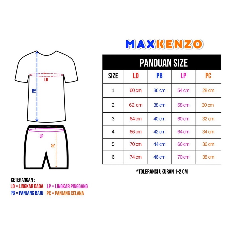 Produk ini memiliki 6 Variasi Size yaitu : Size 1 (1 - 2 th),Size 2 (2 - 3 th),Size 3 (3 - 4 th),Size 4 (4 - 5 th),Size 5 (5 - 6 th),Size 6 (6 - 7 th),