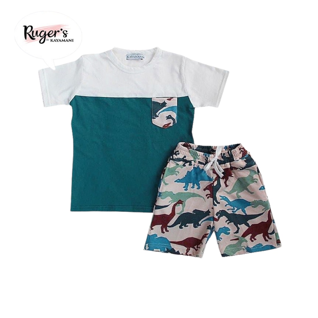 Alasan kenapa harus beli Rugers By Kayamani / Setelan anak laki-laki / pakaian anak laki-laki / baju anak laki-laki set atasan & bawahan tua dinosaur hijau tua sekarang