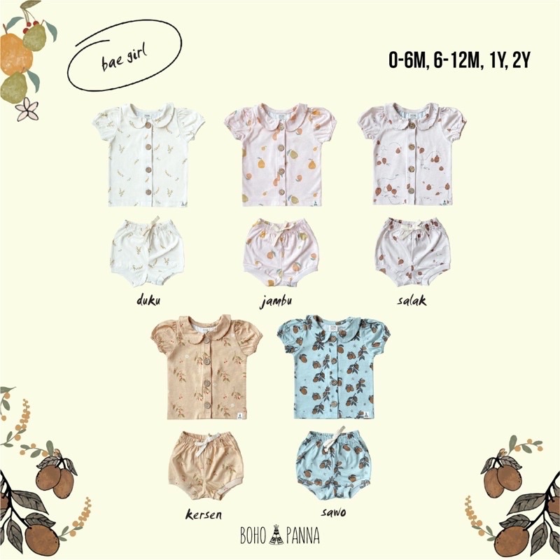 Bohobaby Bohopanna Bae Set Girl Overtee Collar Set Motif baju anak perempuan