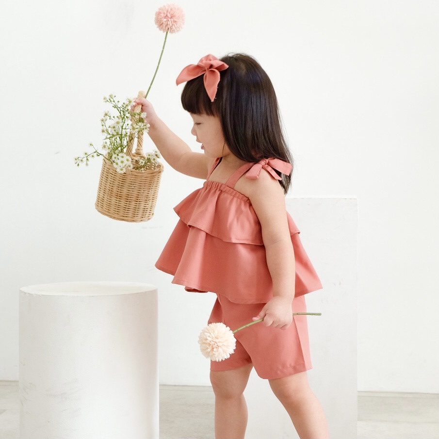 MOONJOY POPPY SET - setelan one set baju anak perempuan ruffle pita