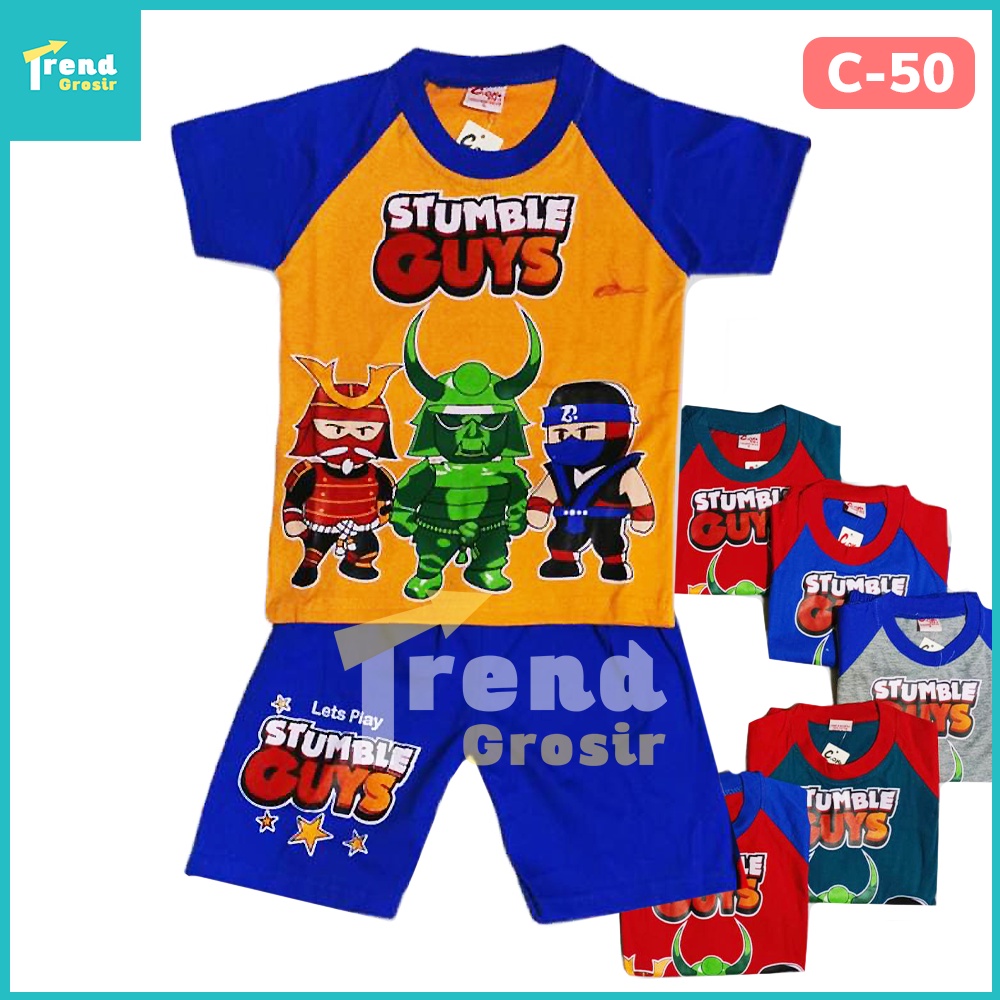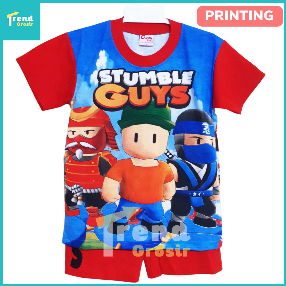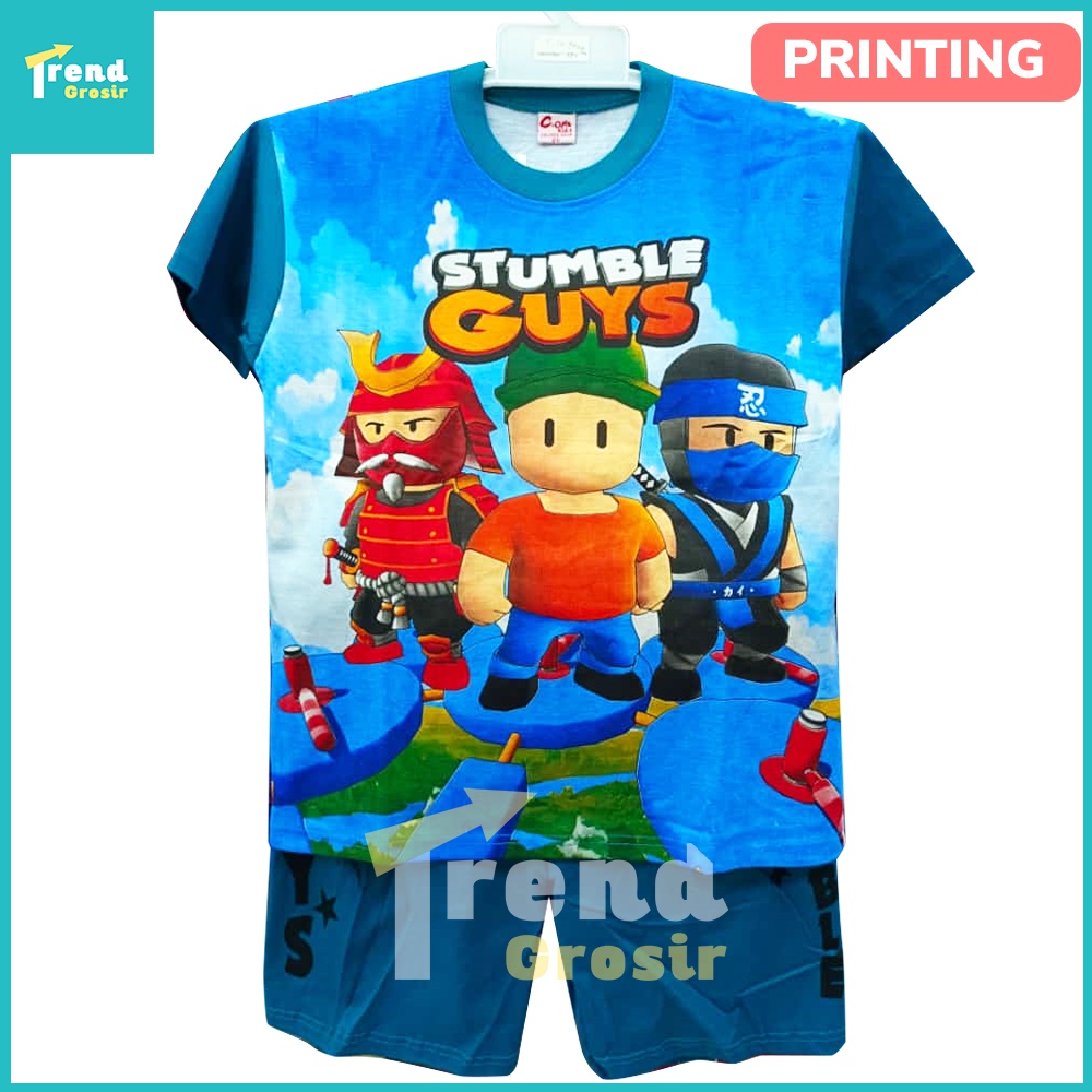 Setelan Anak Laki Laki 2-13 Tahun Motif Stumble Guys Bahan Katun Baju Anak Cowok BD