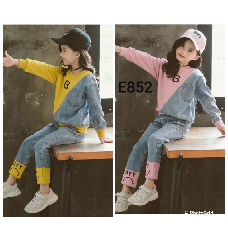 Girlset Setelan Anak Cewek Premium Import B Peach Jeans Pink Usia 5-14 T SETELAN ANAK BRANDED BAJU ANAK BRANDED KOREAN STYLE JEANS BABYTERRY SETELAN ANAK TANGGUNG TEENAGER KEKINIAN TERLARIS TERKEREN TERPOPULER TERBAGUS