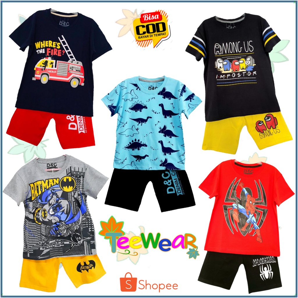 Kelebihan - Kelebihan membeli Teewear Baju Anak Laki Laki / Kaos Setelan Anak Lengan Pendek Setelan 02 Series Spaidr, Amogus Impo, PMK Damkar, Batm, Dino Fullprint di Toko ini